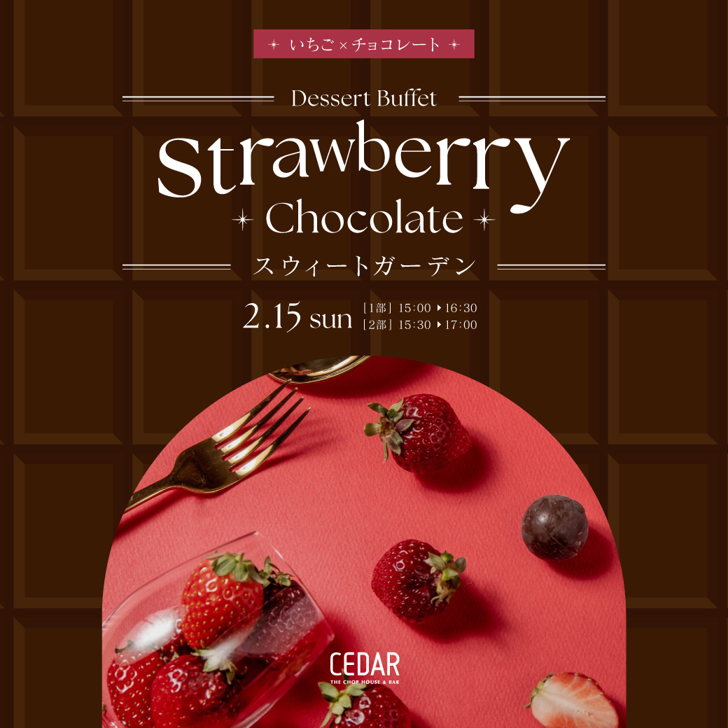 2月15日(日)限定で、いちご畑のような華やかなスイートガーデンをテーマにしたデザートビュッフェを開催いたします。