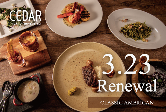 『クラシックアメリカン』をコンセプトに、定番のアメリカ料理をベースにワインのペアリングやチーズなどを豊富にご用意した、大人が楽しめるダイニングにリニューアル致します。