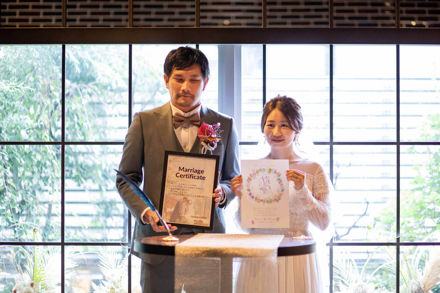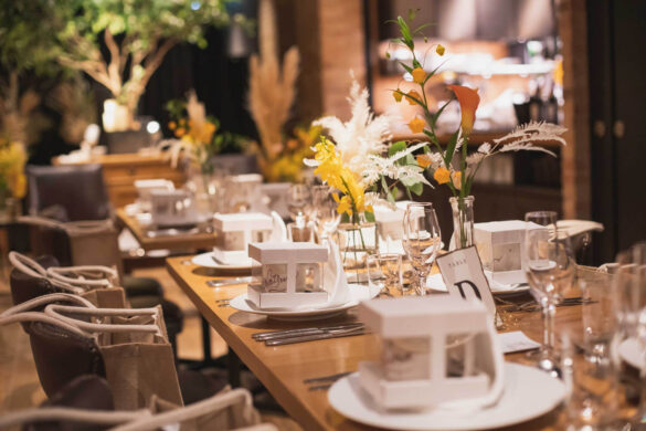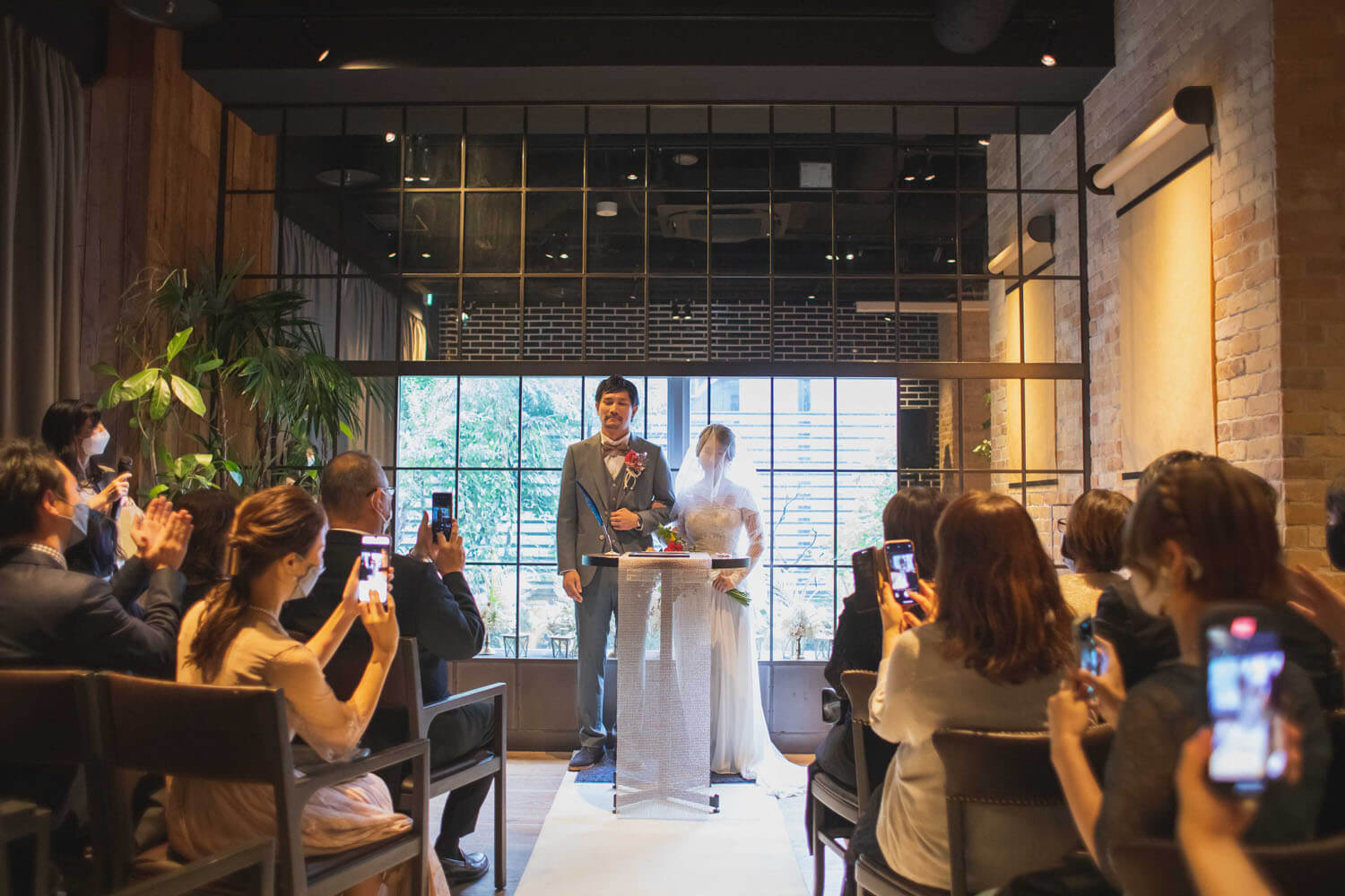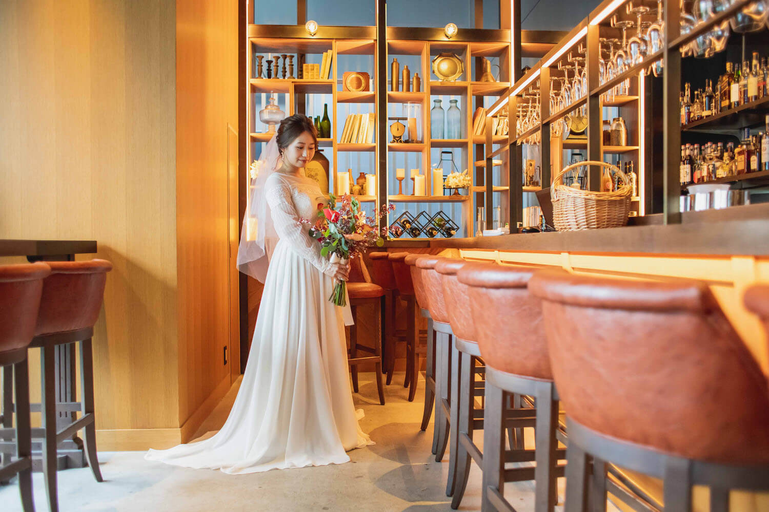 会場は温かみのあるお花にパンパスグラスを合わせトレンドを取り入れた素敵な空間に。ゲストと近くで楽しむためにあえてソファーをメインとして取り入れることで、アットホームでゲストの皆様が自然とお二人の元に集まるようなおふたりの想いをカタチにしました。